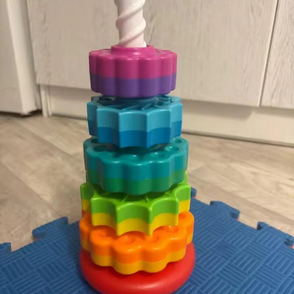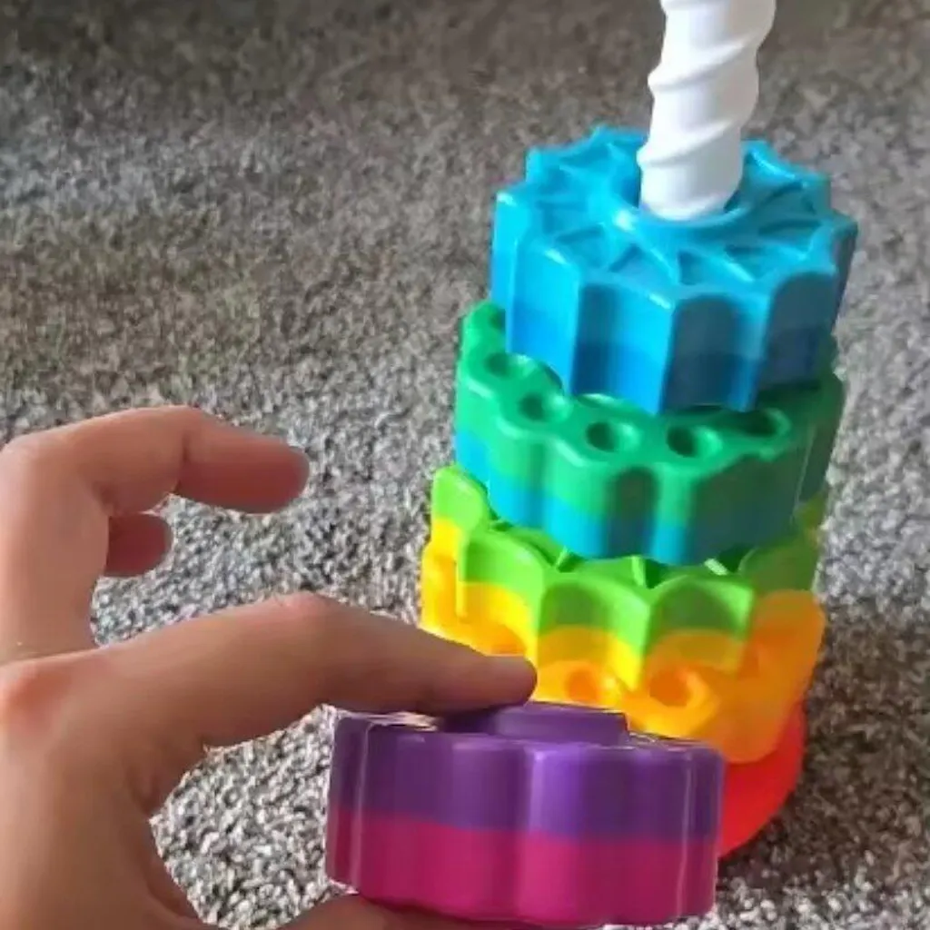 Esse brinquedo educativo é composto por diferentes peças giratórias, que permitem à criança explorar movimentos, encaixes e combinações. Elas podem experimentar diferentes formas de encaixe, empilhando as peças e observando as diferentes combinações que podem ser criadas.